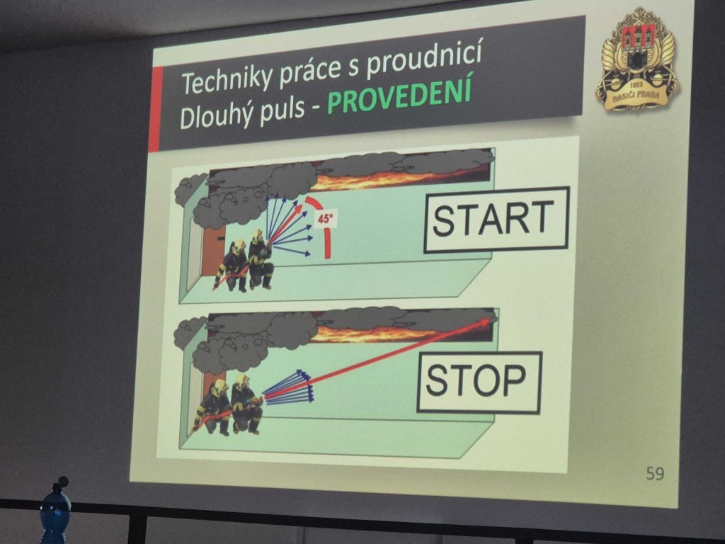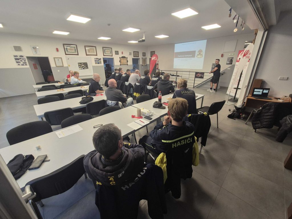 Výcvik byl rozdělen do dvou částí. Teoretická příprava proběhla na zbrojnici dobrovolných hasičů v Písnici, kde se účastníci seznámili se zásadami bezpečného pohybu v zakouřeném prostředí, taktikou hašení a rozpoznáváním nebezpečných fází požáru – především flashoveru, tedy přechodu požáru do plně rozvinuté fáze.